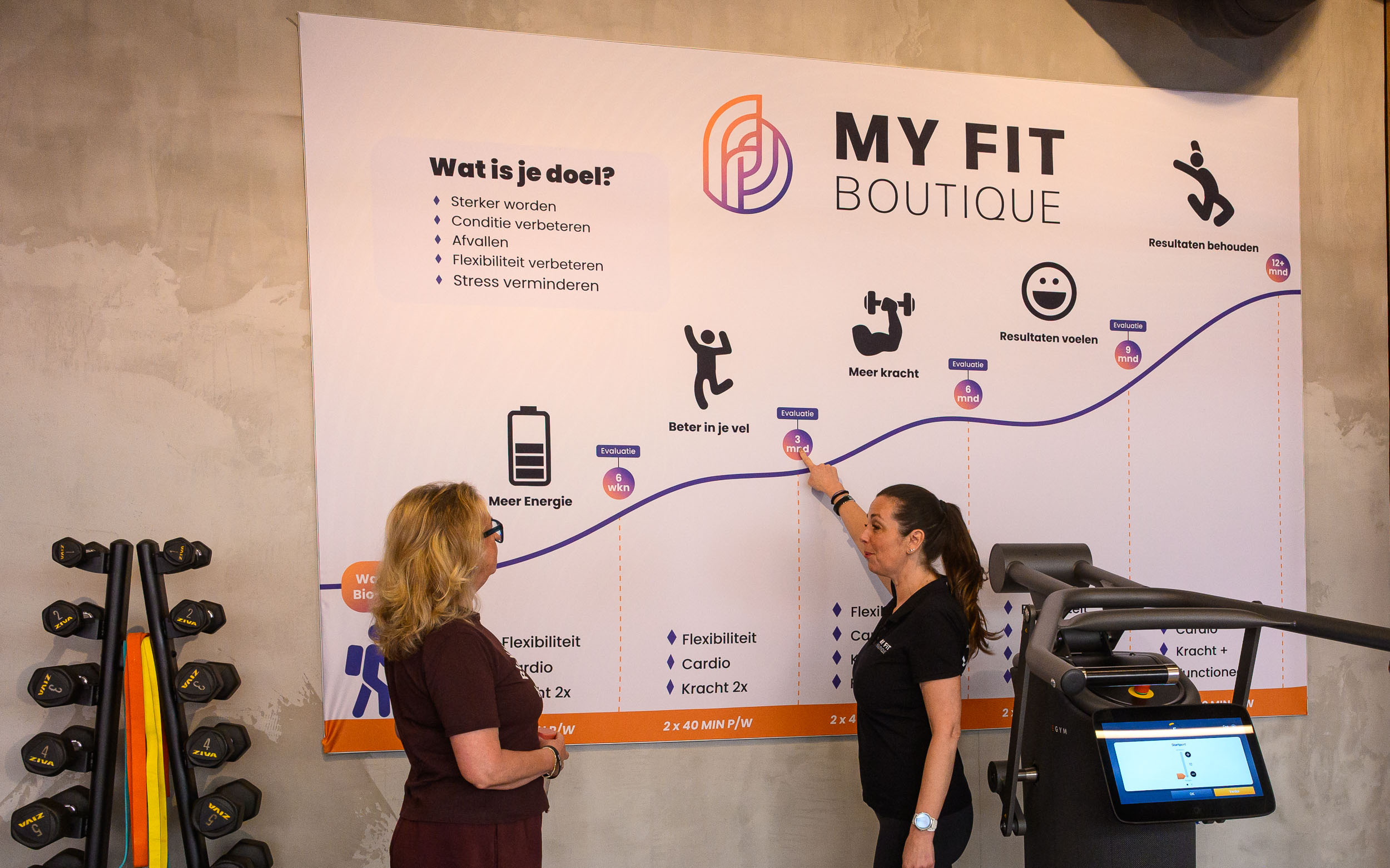 My Fit Boutique is geen standaard sportschool. Het is een kleinschalige boutique gym waar persoonlijke begeleiding centraal staat. Met onze EGYM-apparatuur train je je hele lichaam in ongeveer 30 minuten. De toestellen stellen zich automatisch in op jouw lichaam en niveau.